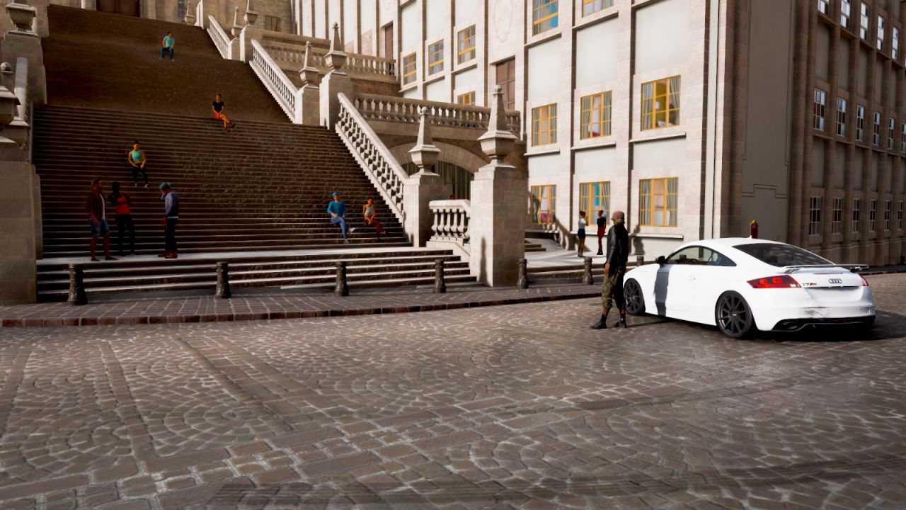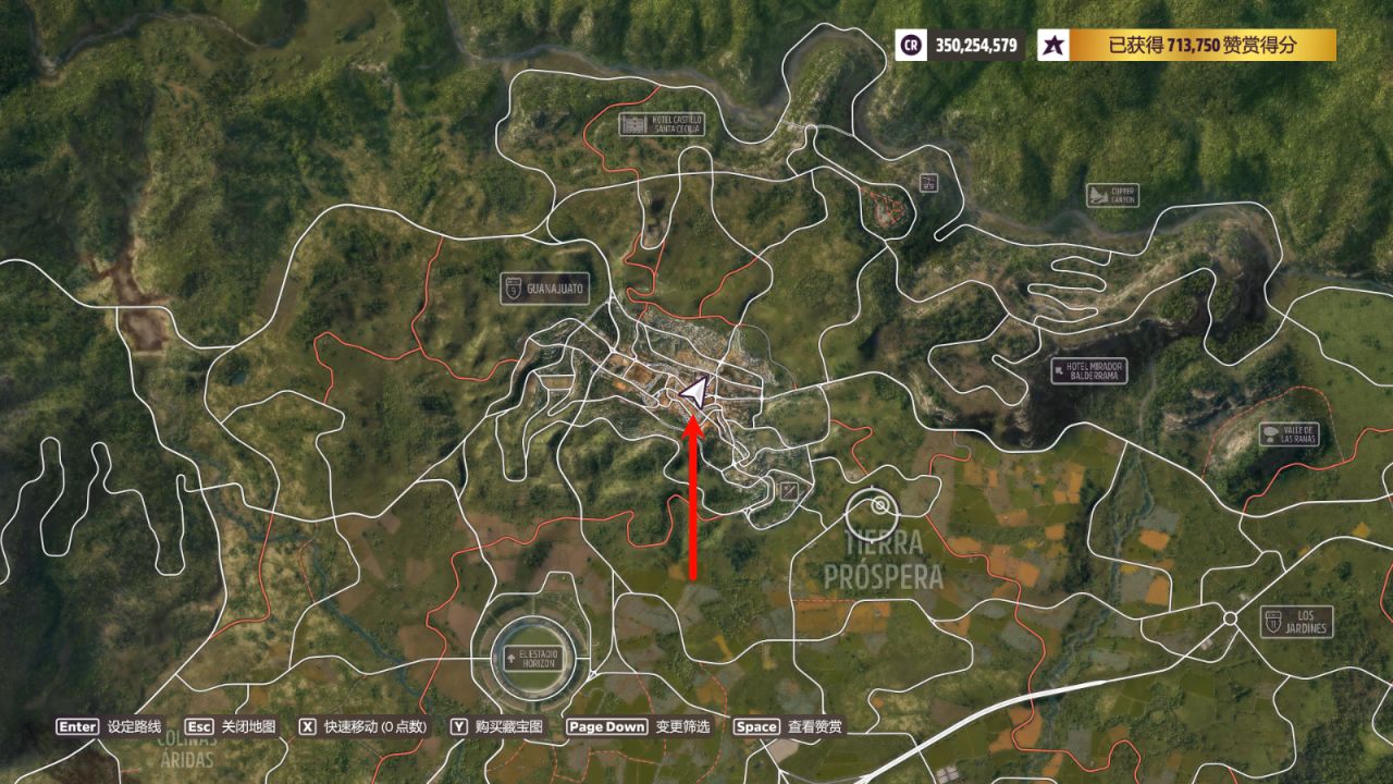 在瓜纳华托通往大学的台阶上拍摄一张你的角色站在车外的相片(要在效果模式里将角色调整的车外来),位置如图,完成奖励为“艺术家”服饰奖励