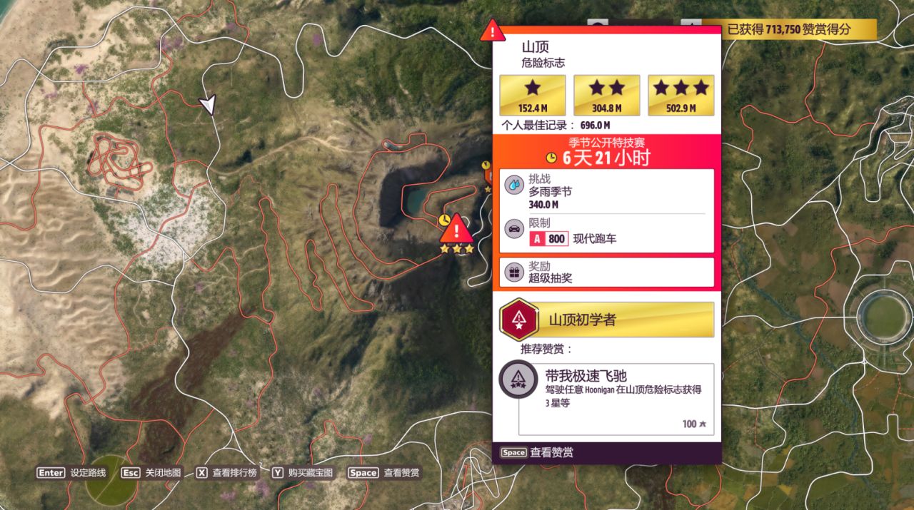 危险标志:山顶,完成奖励为超级抽奖(完成条件:340m)
