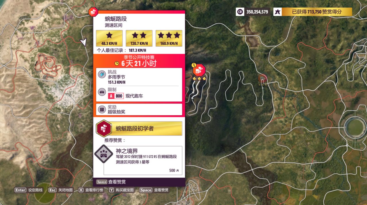 测速区间:蜿蜒路段,完成奖励为超级抽奖(完成条件:151.3km/h)