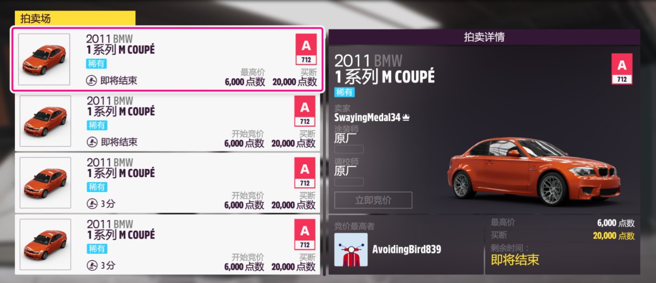 驾驶2011款BMW 1 Series M Coupé在危险标志获得2星等(推荐“炮弹”危险标志)