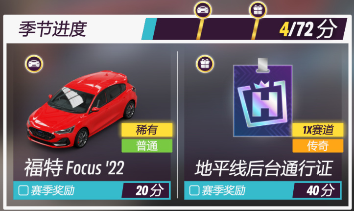 夏季赛20分进度奖励为2022款福特 FOCUS ST和40分进度奖励为地平线后台通行证