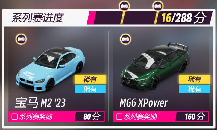 S53赛季系列赛80分进度奖励为2023款宝马 M2和160分进度奖励为2021款名爵MG6 XPOWER