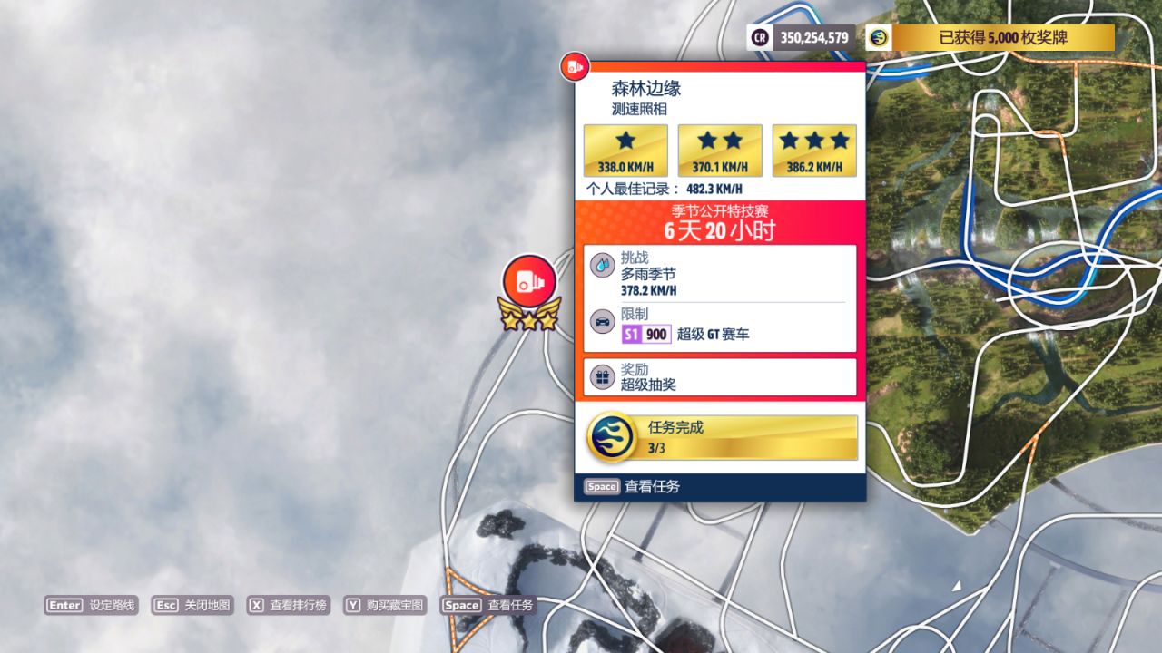 测速照相:树林,完成奖励为超级抽奖(完成条件:212.4km/h)
