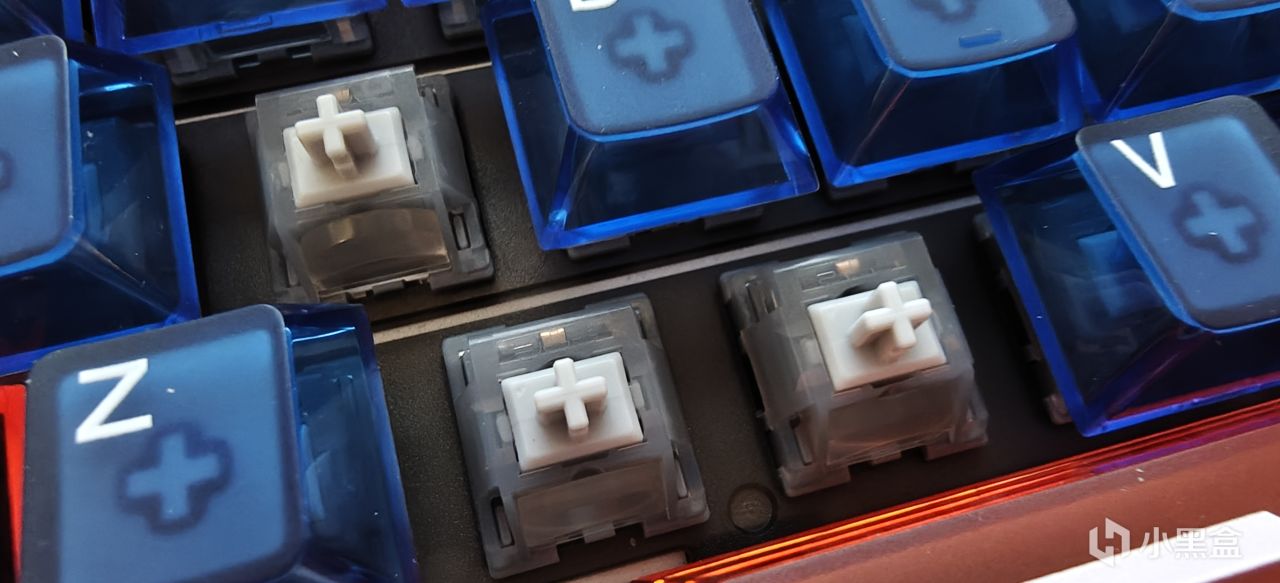 来到键盘内部,这次的轴体是特制的TTC赤焰银轴。官方称之为电竞HIFI轴,按下的声音确实很悦耳。除了声音以外,按下弹起支撑的手感也很饱满。按下1.2mm就可以进行触发,40g的触发压力。白色轴座也确实符合赤焰银的命名。双段加长弹簧的按下弹起是真的不错。