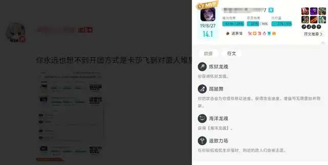 一个拿了退敌立场符文(低生命值时击退周围玩家)的卡莎也可以变成“开团英雄”;