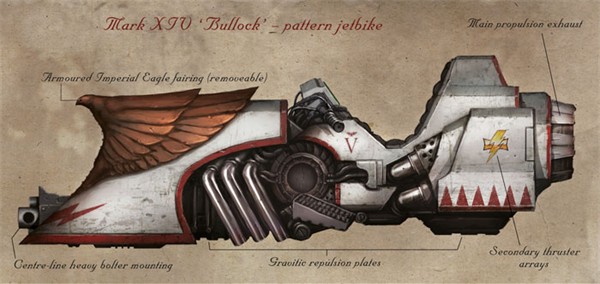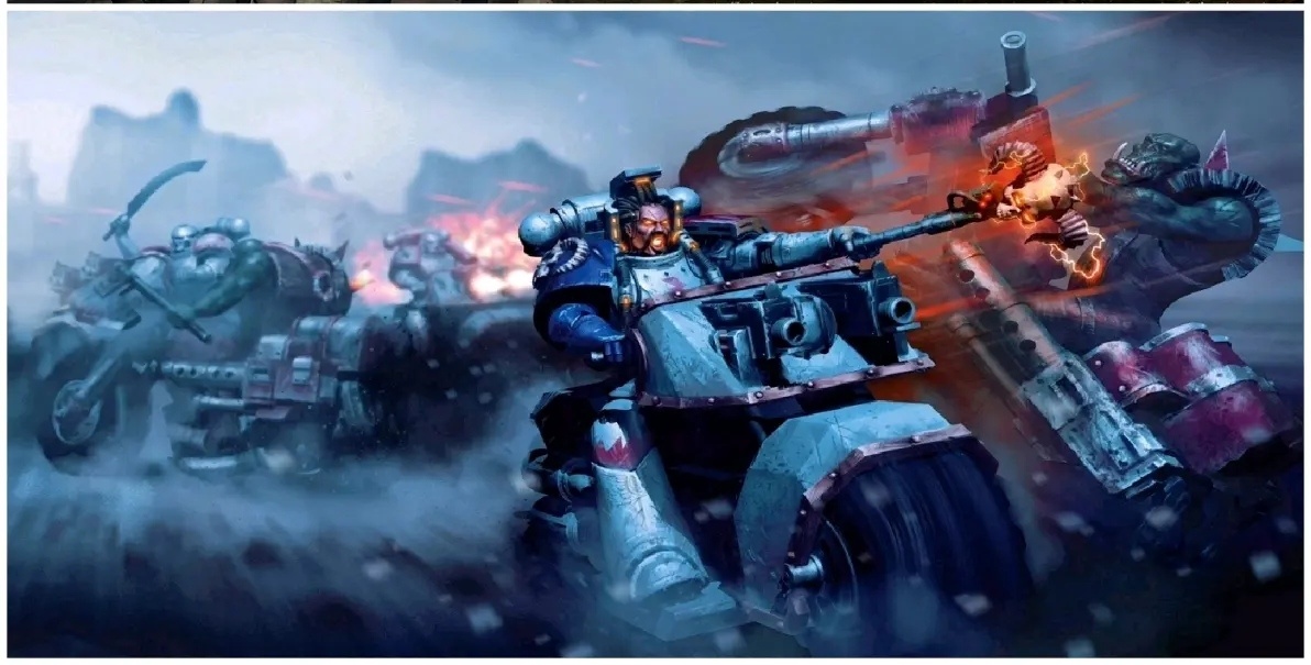 作为战团的标志性单位,血骑手是"速度即力量"理念的终极体现。成员均从切格里斯草原的顶尖骑手选拔而来,经过数年喷气摩托训练才能正式入列。他们配备改装型Mark X动力甲,甲胄绘有红色闪电纹与部落图腾,手持加装瞄准镜的爆弹步枪与弯刃链锯剑,可在时速300公里的机动中精准射击。