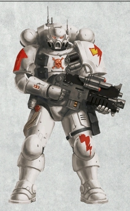 白色疤痕的军团标识深深植根于切格里斯传统。他们的动力甲以白色为基底,辅以红色闪电纹章,既象征着草原的风雪,也代表着突袭的迅捷。