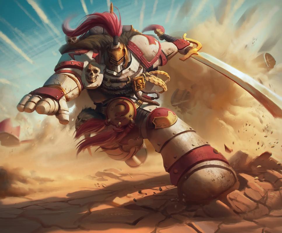 单兵装备特化:链锯剑被设计为弯刀造型,贴合骑兵劈砍习惯;爆弹手枪加装战术绳,便于高速机动中单手操作;动力甲表面刻有流线型纹路,既降低空气阻力,又象征乔格里斯的草原之风。