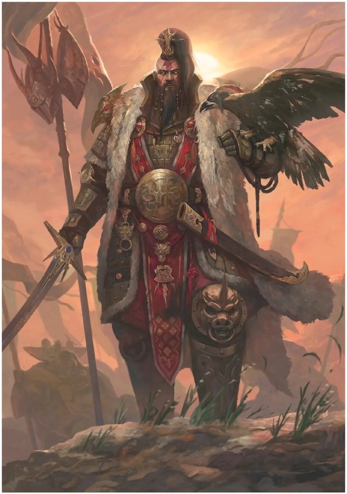 大汗(Great Khan):战团的绝对领袖,继承察合台·可汗的权威与称号,居住在乔格里斯可汗木·喀特山的泉州宫中,既是军事统帅也是精神象征。现任大汗科'萨洛汗(Kor'sarro Khan)延续了原体的战术风格,以深入敌境的突袭作战闻名。