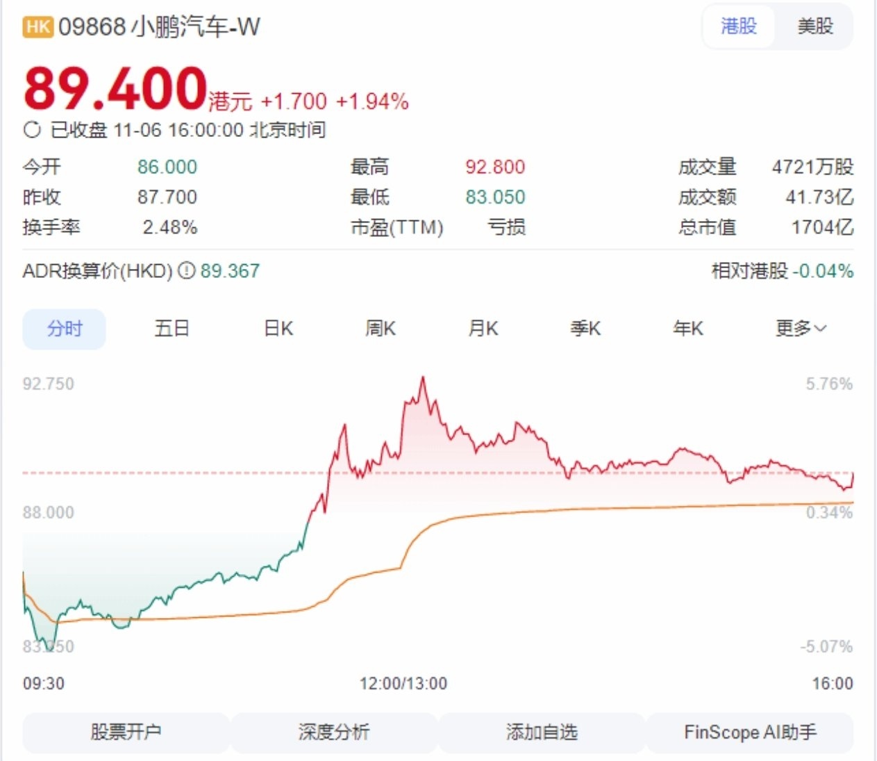 这则回应视频发布后,小鹏汽车港股股价迅速直线拉升,一度大涨超5%。截至当日收盘,小鹏汽车股价报89.4港元/股,市值约1704亿港元。