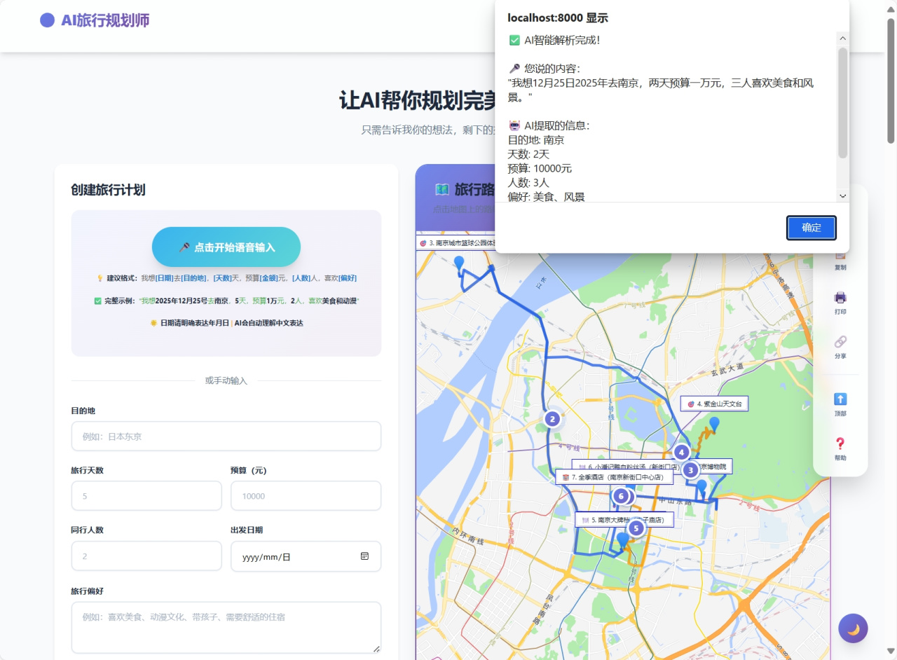 但是!现在的 AI 非常好用了,与其自己折腾这些麻烦事,不如直接交给 AI,一键就能搞定。于是熊猫发现了这么个项目 ——AI 旅行规划师。项目支持语音输入识别、智能行程规划、详细行程安排、费用智能估算,还能实时显示进度,而且地图交互展示特别完整。