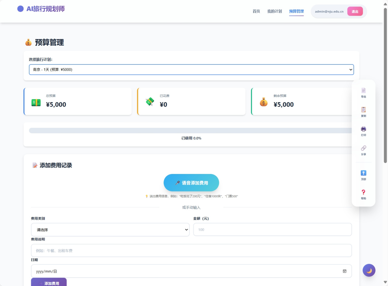 你也可以直接在预算管理中添加你的预算情况,明确消费类型以及金额,这样AI生成的计划就一定不会超过这个预算。