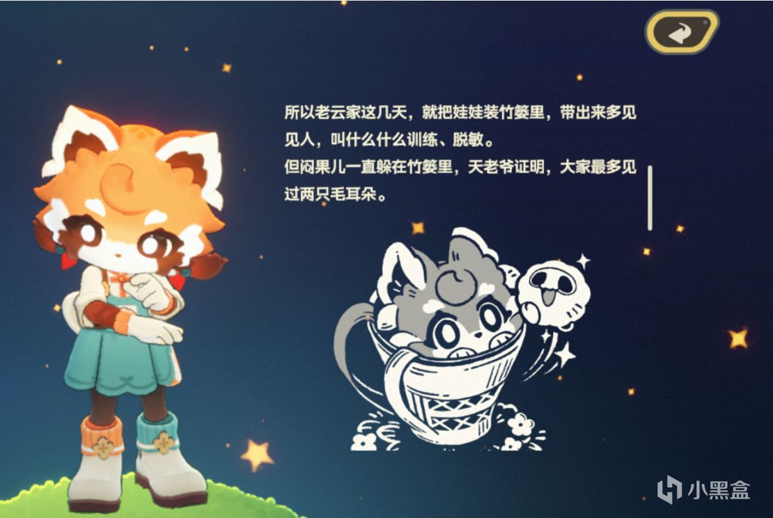 与云果达到一定亲密等级后,我们也会慢慢发现云果的成长经历。小时候的云果也和如今这样的害羞,而且还不会笑,直到有一次姥爷带着云果走丢,云果遇到了绿色阿奇宝,才第一次开怀大笑。