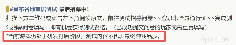 这样的谨慎在官方的宣发中也能看出来。在《星布谷地》首曝后,在官方每一篇推文内容中,都会打上“当前游戏仍处于研发打磨阶段,测试内容不代表最终游戏品质”的小尾巴