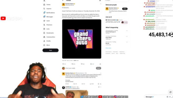 知名网红“甲亢哥”Speed在YouTube直播中得知游戏将比原定计划晚六个月发售时情绪失控,甚至无法读完声明。他反复怒吼"这游戏根本出不来了",愤怒情绪持续升级。