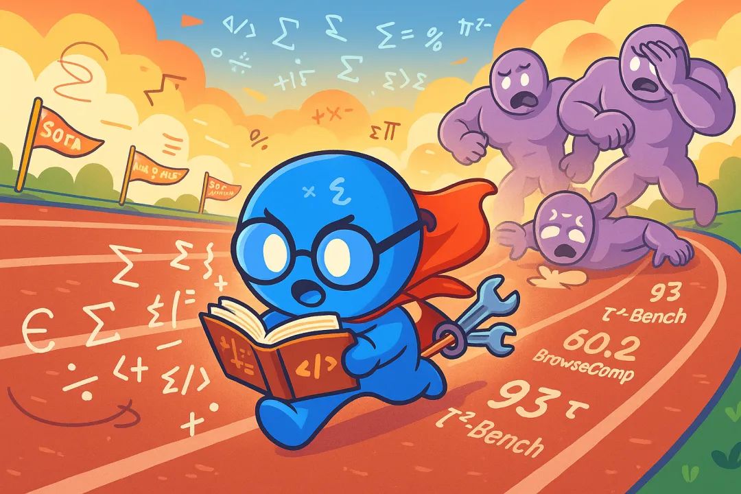 在智能體工具使用 τ²-Bench Telecom 幹到 93。