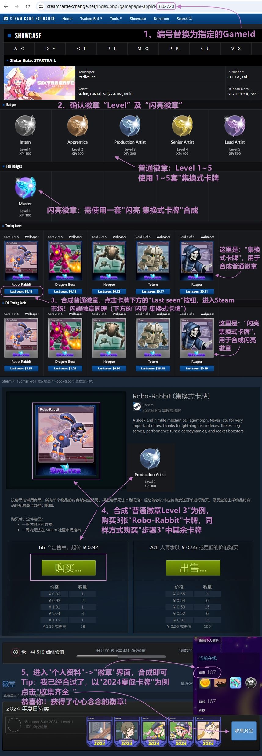 P2~9:徽章分享。格式Level_GameId,前缀:Lv3_(3级普通)、F_(Foil 闪亮),后缀是游戏Id,搭配P10教程使用