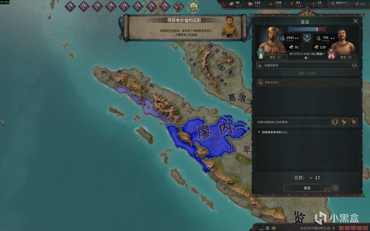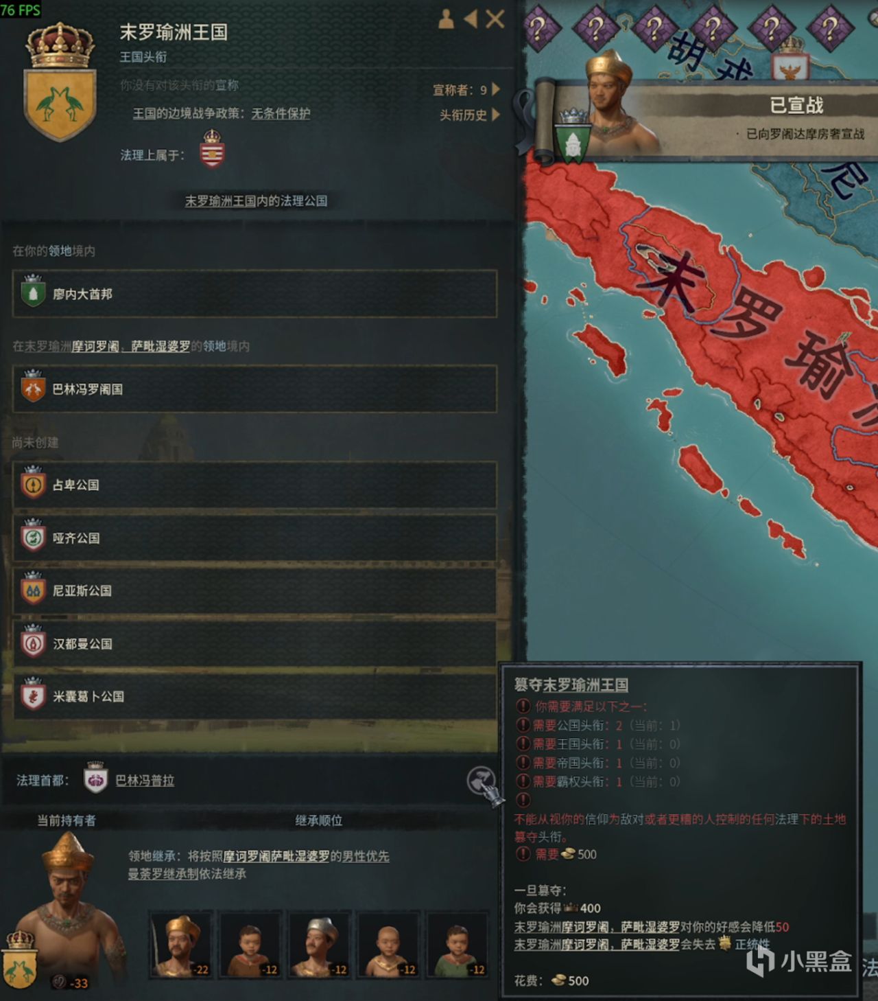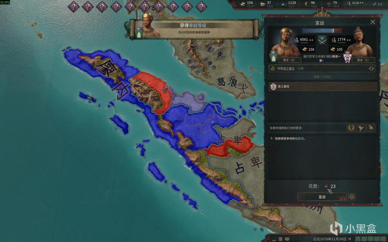 一路切瓜砍菜過來之後 打14塊領地規模,這是必須的 現在點末羅瑜州國王,點互動裏面的臣服宗主,選微薄貢品。