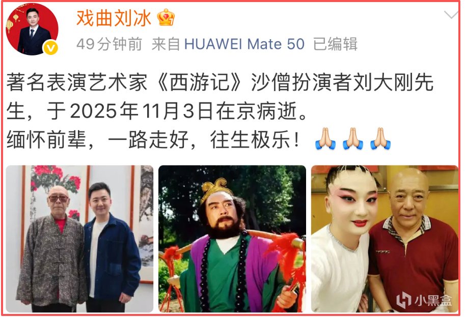 11 月 7 日,豫劇演員劉冰的悼念發文讓無數人陷入傷感,《西遊記續集》沙僧扮演者劉大剛先生,已於 11 月 3 日在北京因病離世,享年 78 歲。