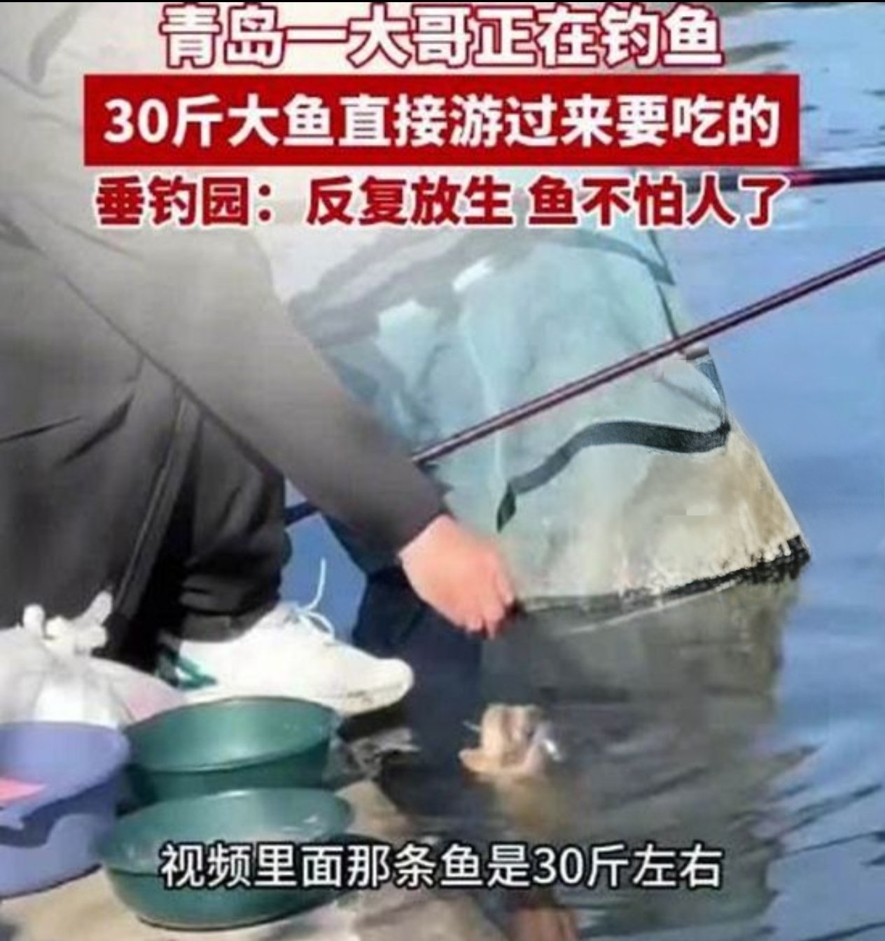 近日,山东青岛一垂钓园内发生有趣一幕,一位钓鱼大哥遭遇30斤大鱼主动游到岸边讨食。视频中,这条体型硕大的鱼毫无惧色地张开嘴巴等待投喂,钓鱼大哥顺手将饵食喂给它后继续淡定垂钓。