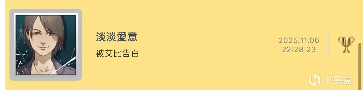 一周目通关,跳“噩梦的终结”奖杯;艾比来机场表白,跳“淡淡的爱意”奖杯