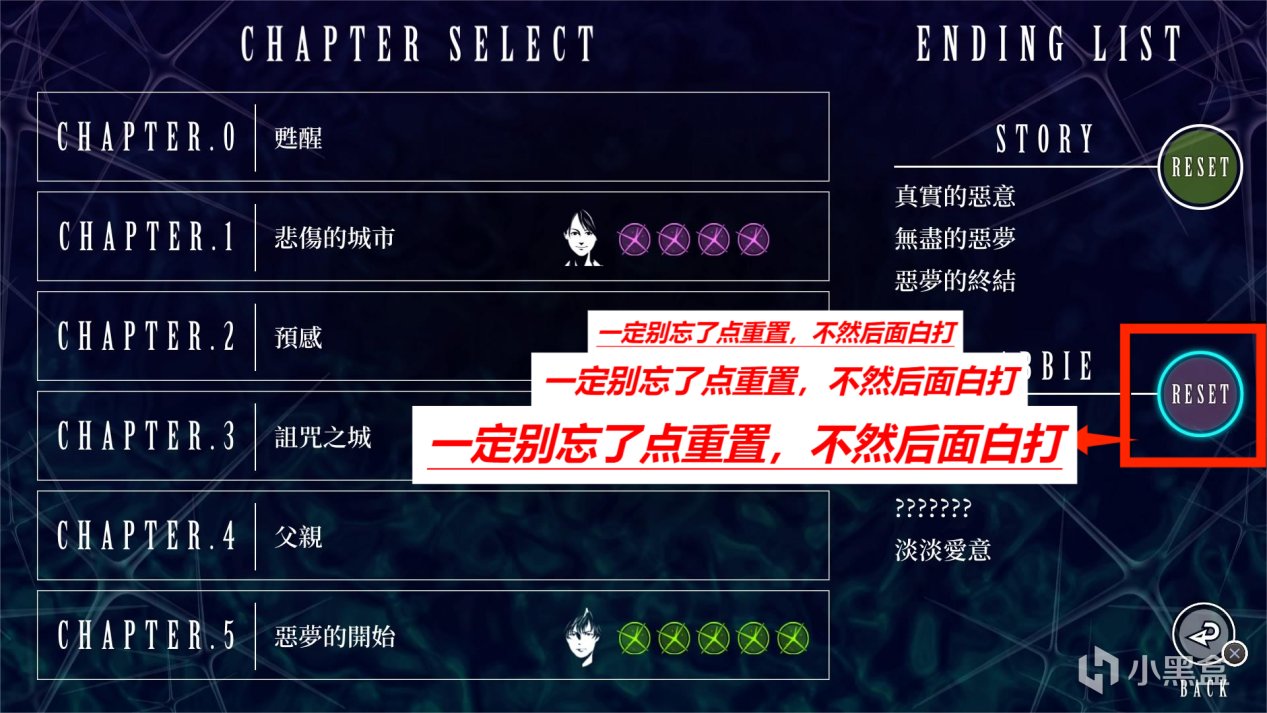 接下来开始进入二周目补奖杯,在进入选章节界面时一定一定一定要重置艾比恋爱线关键节点。