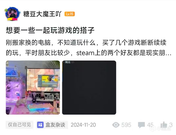 你們肯定想不到,我在黑盒發的第一個帖子,是找遊戲搭子的,哈哈哈。