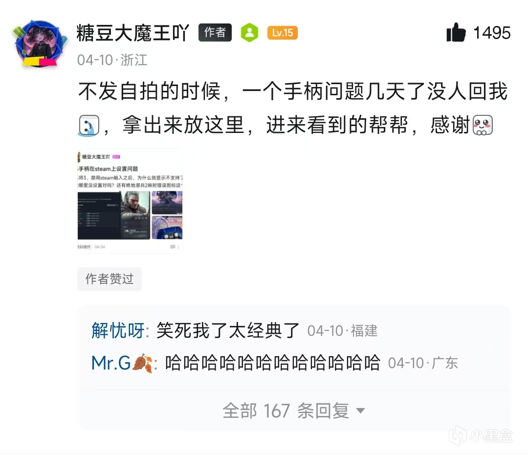 我看帖子火了之後,趁熱打鐵把之前無人搭理的手柄問題的帖子放在了置頂回帖裏,讓很多盒友忍俊不禁,也讓很多熱心的盒友幫我解決問題。