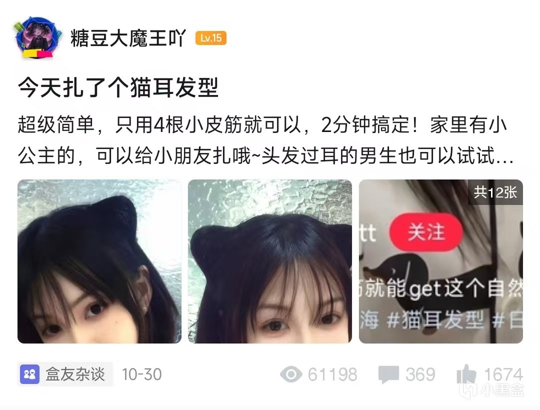 理完髮的有一天,我給自己紮了一個貓兒髮型,覺得很有趣,於是也發了帖子分享了,收藏破1000,估計很多疼愛女兒的父親想給女兒扎,另外還有很多想偷偷摸摸扎的小男娘們吧,要是能發給我看看就好了...
