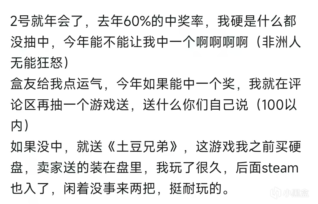 因爲是一等獎,所以又追加了一個帖子抽獎https://api.xiaoheihe.cn/v3/bbs/app/api/web/share?link_id=7ba86f9aa0c2