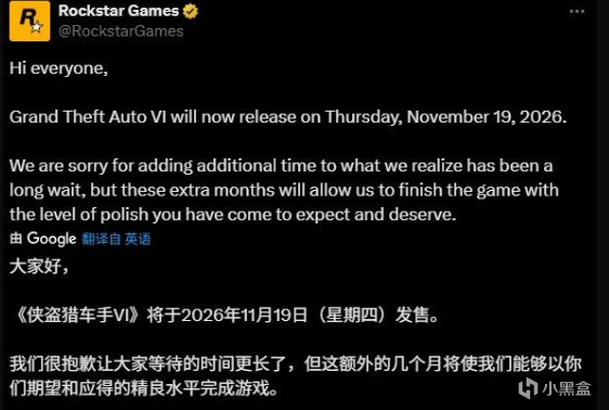 就在昨天早上,R星官方突然宣布,万众瞩目的《GTA6》再度官宣跳票,延期至2026年11月19日发售。