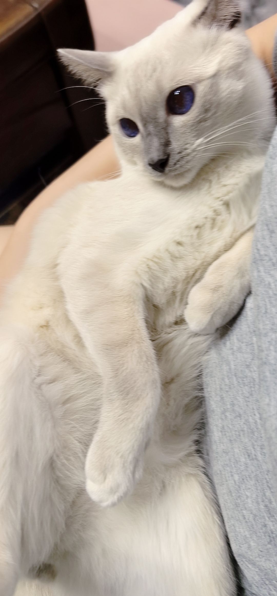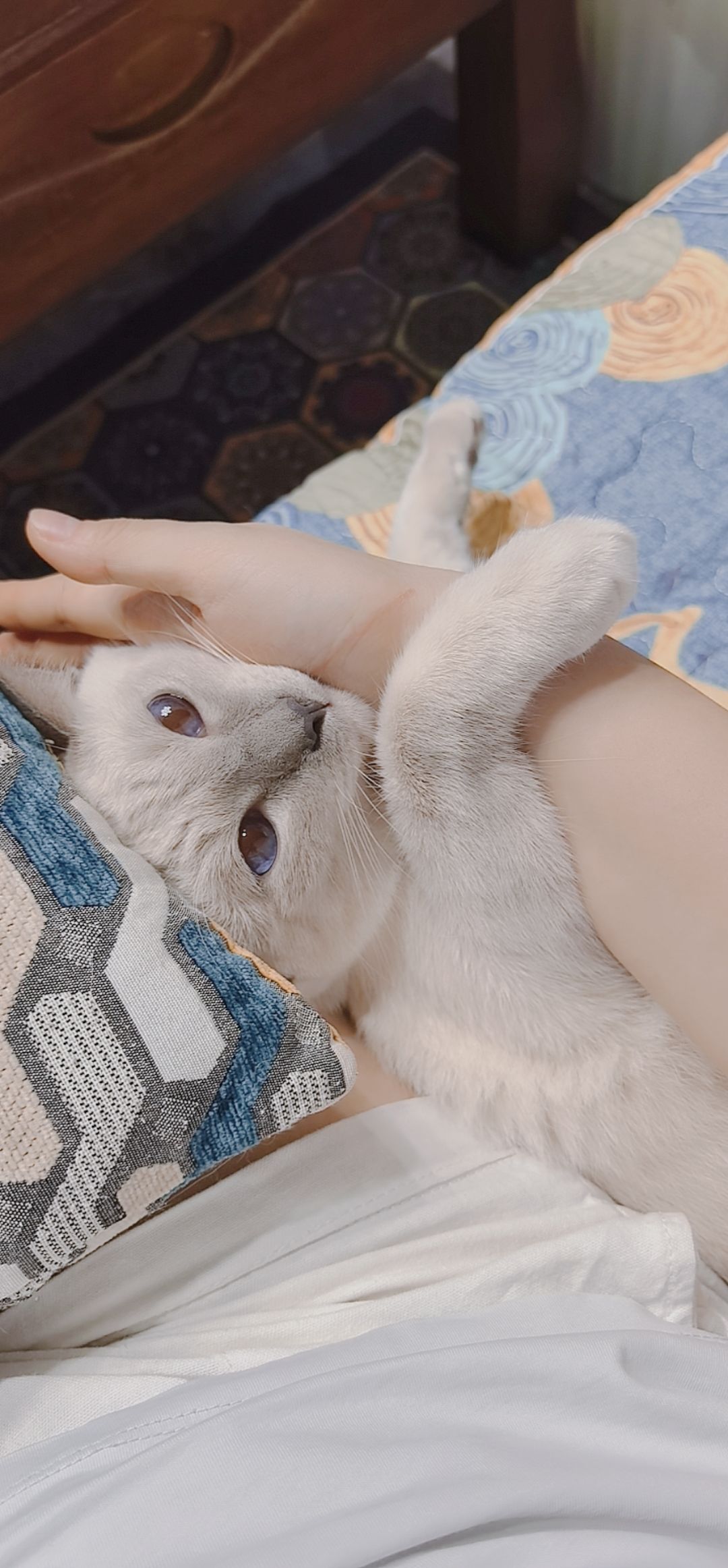 四目相对的时候,他会突然冲向我,瞬间来到我脚边,说句“上来”,立马跳到我的腿上,或者抬起两只爪爪要抱抱。