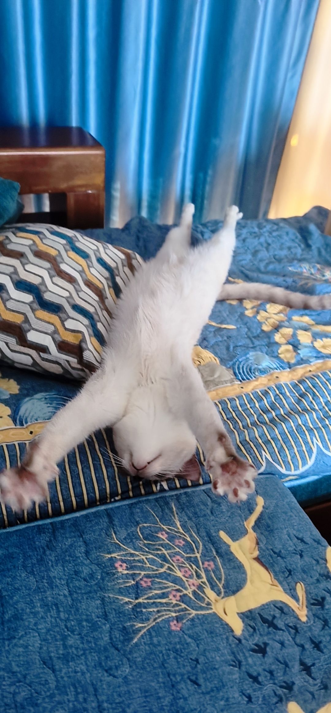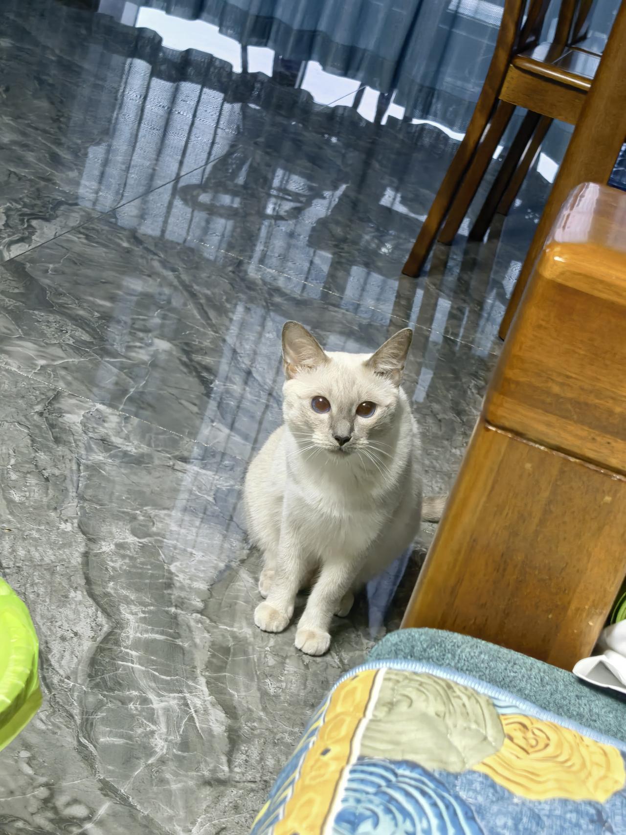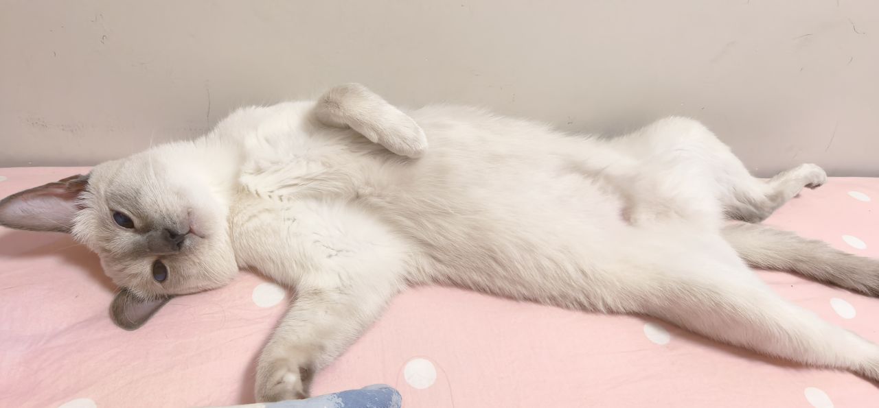 喊他的名字,每次都会喵的一声有回应,但最多叫三次,他就会假装听不见把头侧倒一边。