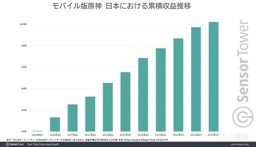 除了在韓國市場的歷史性突破,在日本市場,《原神》同樣也在近日迎來喜訊。Sensor Tower發佈的報告顯示,今年1月,《原神》在日本市場的累計收入已經突破10億美元,而在去年12月,《原神》在日本市場的累計收入纔剛達到9億美元左右。