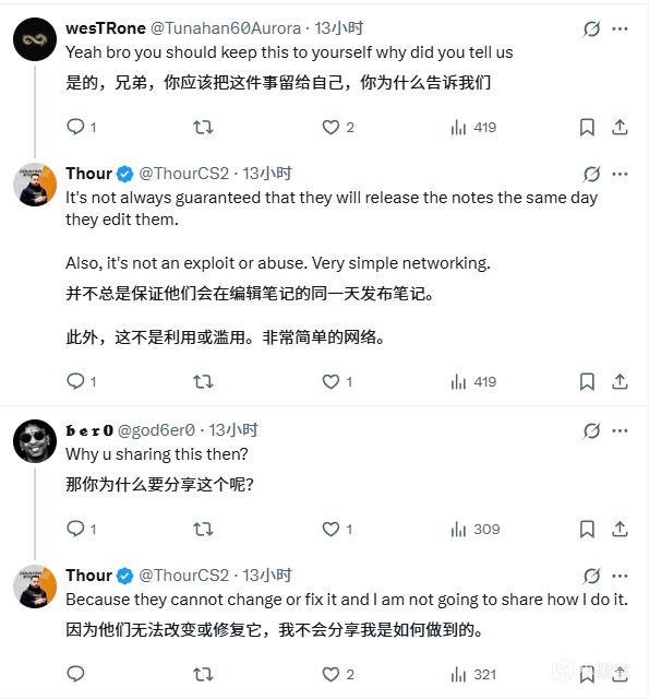 Thour回覆說他不能保證V社一定會更新,他也不會分享他是怎麼做到這一點的(指監控CS2開發人員)