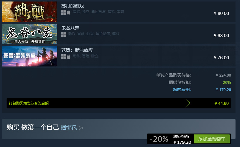 8折的捆绑包支持补齐,有其中两个游戏购入更划算