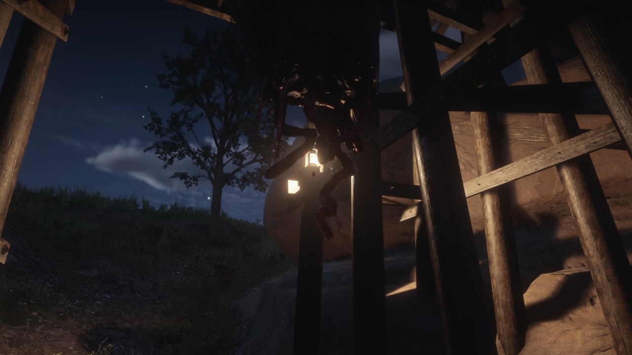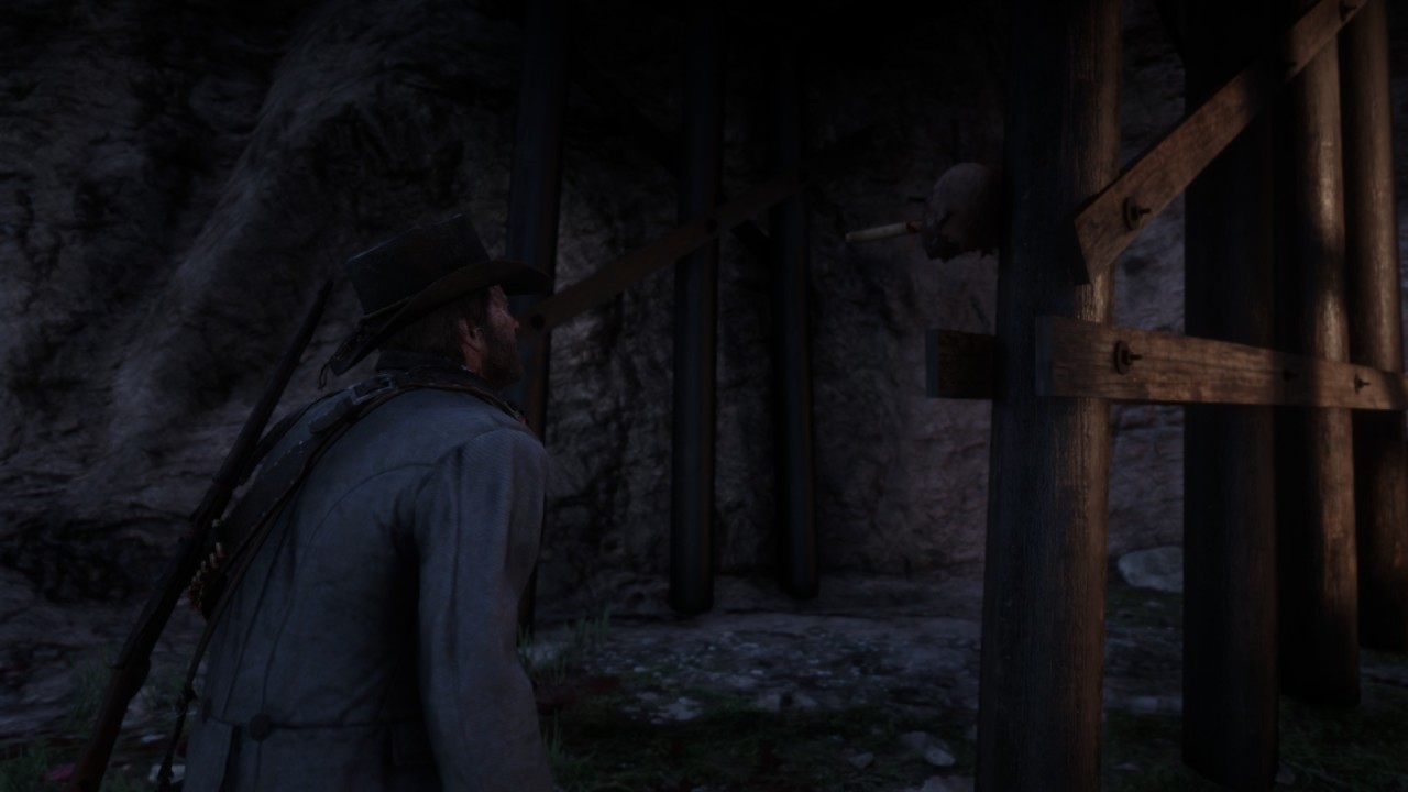 • 殺手用木棍貫穿了被害人的身體,死亡帶來的佝僂身軀在那一刻被拉得筆直。