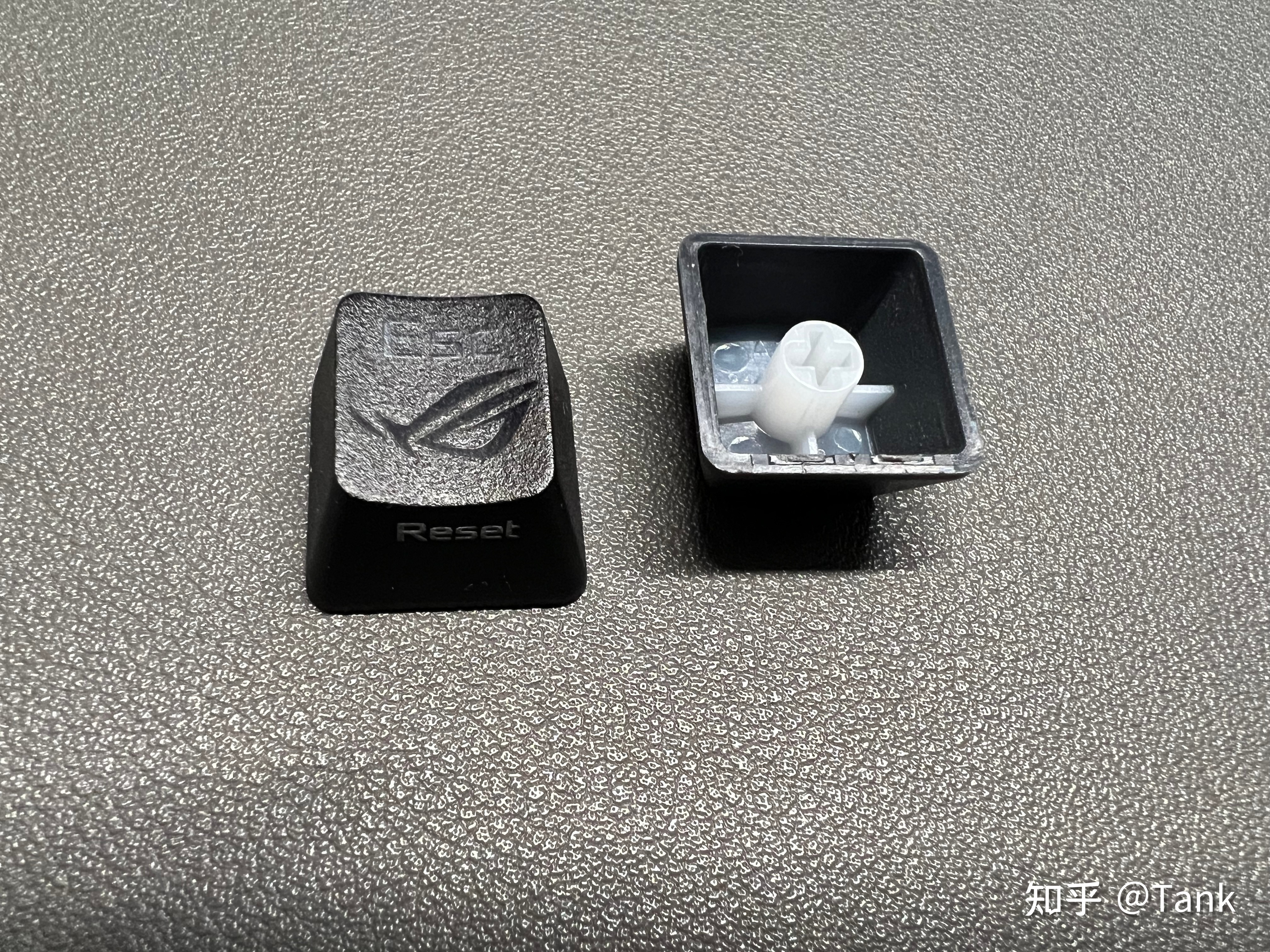 字符印刷居中偏上,FN 組合功能鍵會顯示在鍵帽側刻位置,Mac 系統按鍵會印在鍵帽正下方,除此之外這套鍵帽仍然集成 ROG 的幾個傳統: