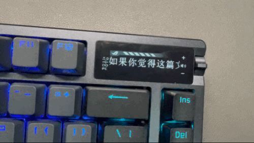 右上角的 OLED 屏幕和三向搖桿是 ROG 夜魔的亮點設計,這個屏幕可玩性還是蠻高的,後面在驅動那裏我詳細說明,搖桿可以向上向下撥動,中間可以摁下,初始默認設置是調節音量,也可以在奧創中心更改爲其他設置。