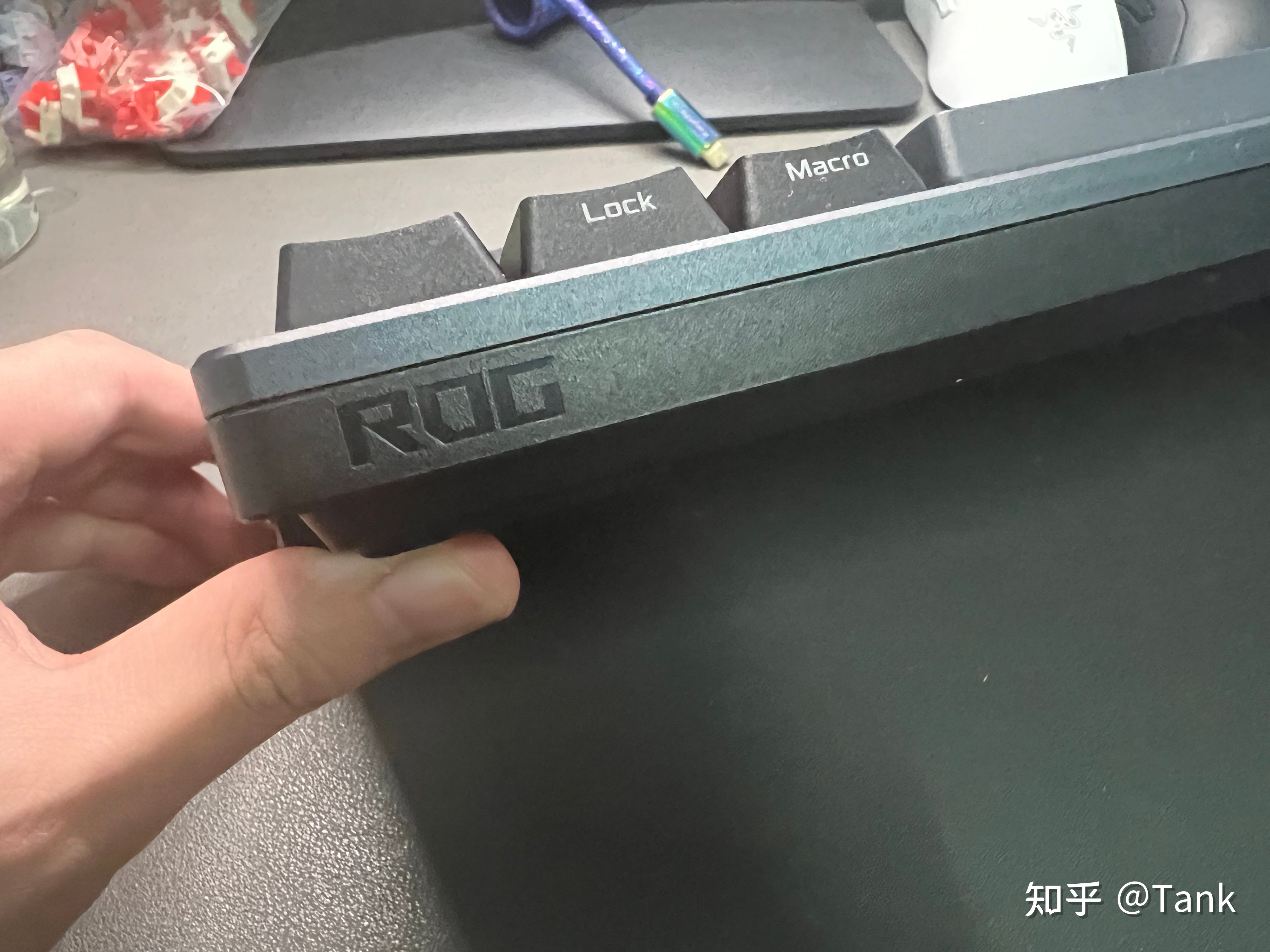 是我玩過的 ROG 鍵盤裏面最重的一把,上蓋是金屬材質的,深灰色陽極鋁工藝,上稱看了下1.1KG左右。