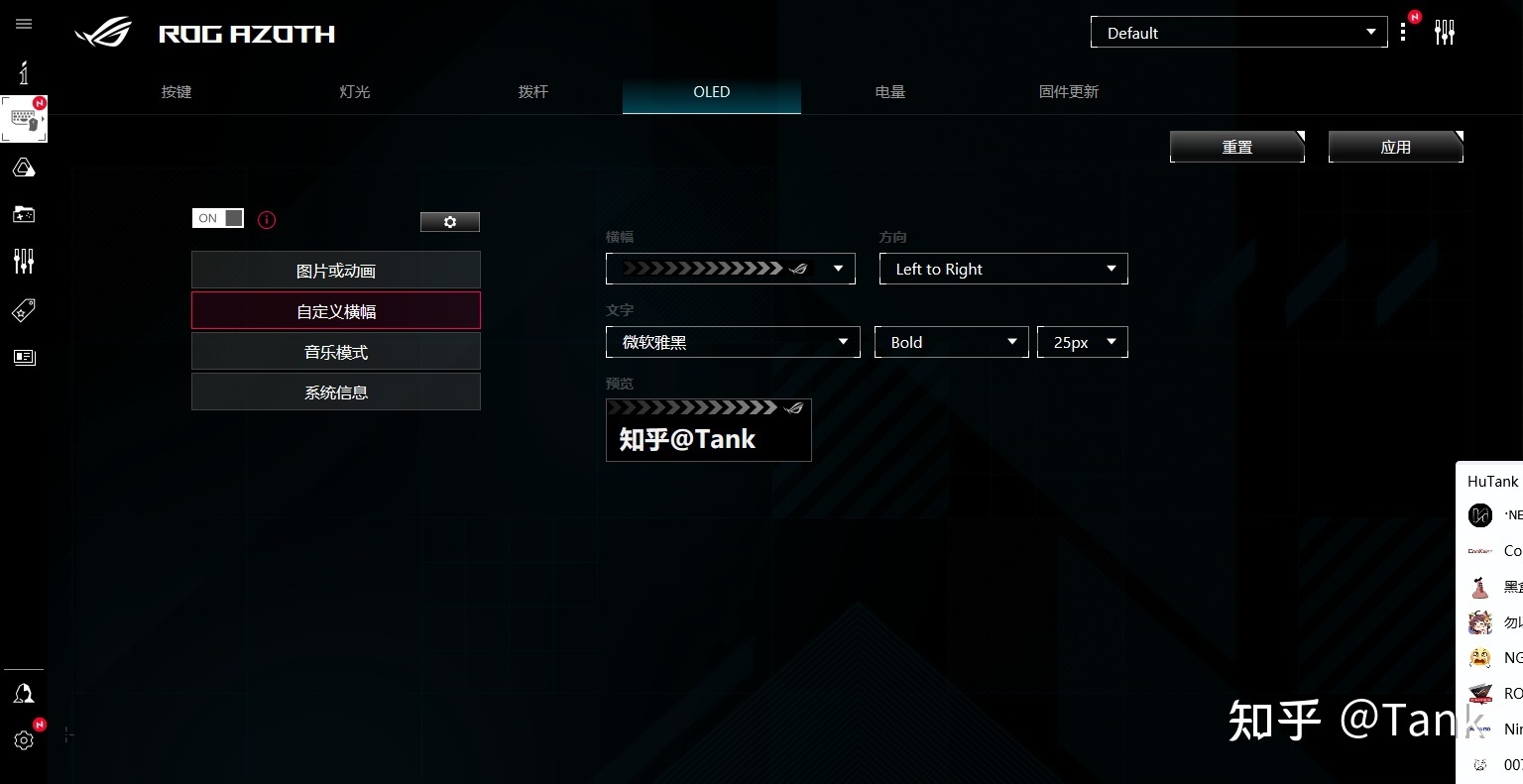 我自己用的比較多的是這個橫幅功能,可以把自己的ID打在 OLED 屏幕上,可選的字體很多,加粗、斜體下劃線等格式也支持,還可以修改字體大小。