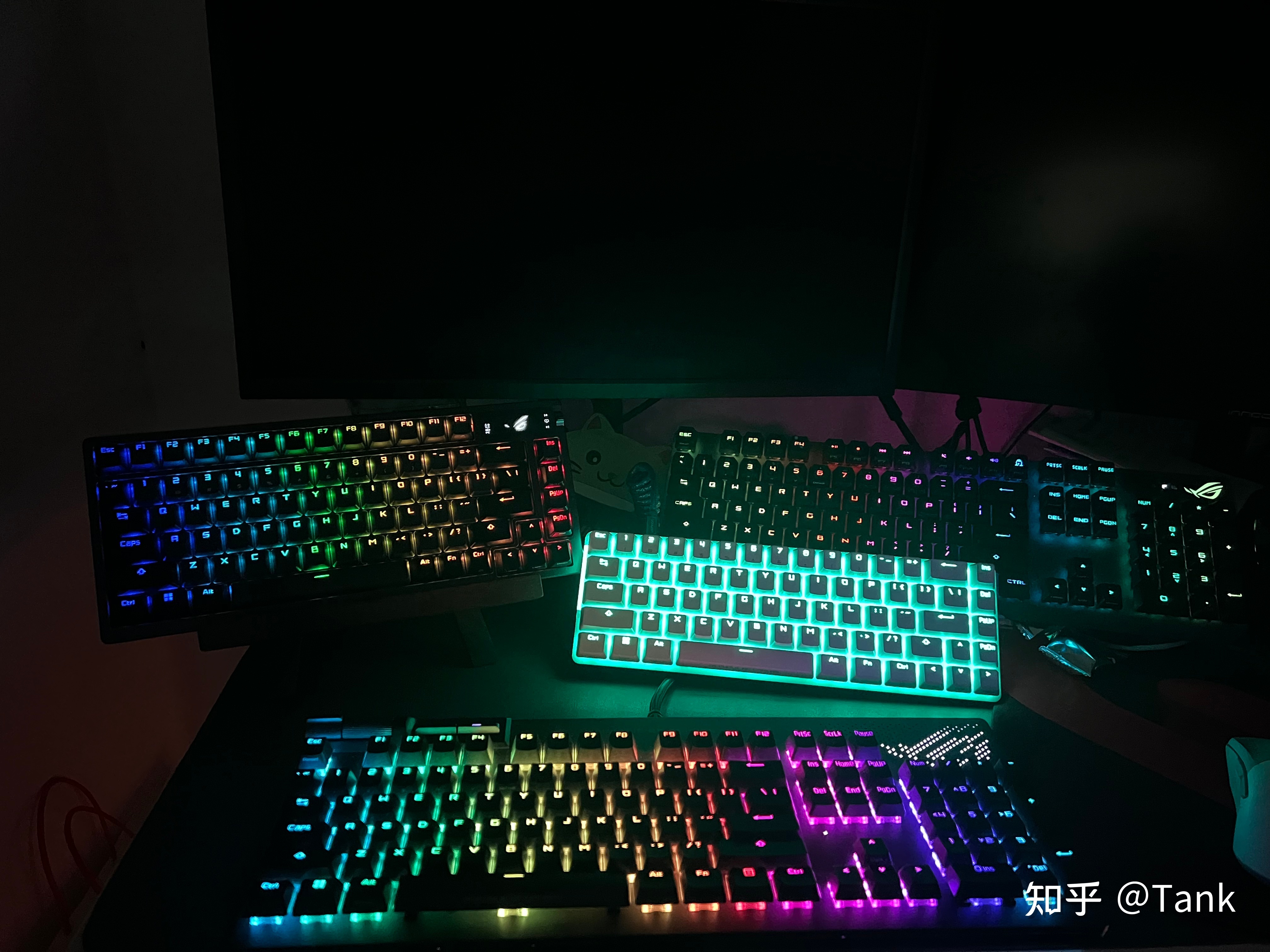 這裏也放一張我自己把四把 ROG 鍵盤放一起的 RGB 燈光展示圖。