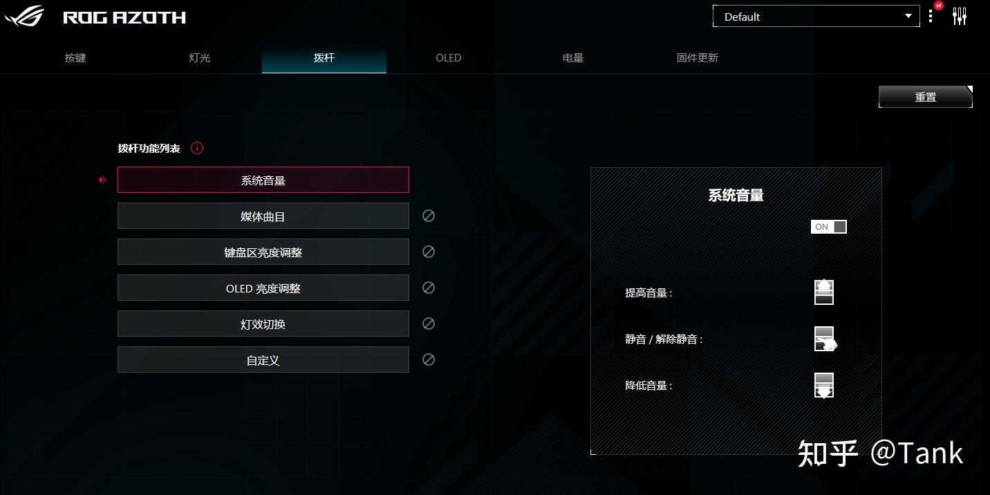 撥杆默認是調節系統音量,也可以根據自己需求改成切歌、調亮度、切換燈效,當然也可以自定義。
