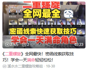 值得一提的是,关于《二重螺旋》的二创在B站、抖音等平台已经开始出现,由于赛琪、幻景等重要角色在当前剧情里已经退场,很多同人内容能够在制作组补充她们的剧情之前满足玩家们的需求,也让《二重螺旋》的IP价值逐渐跑起来了。