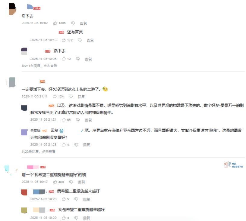 在各种评论区里玩家也对《二重螺旋》的优化和新版本内容表达期待,真诚的希望游戏能“活下去”并且“越来越好”。