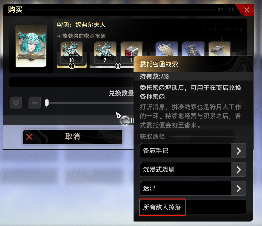 限定角色可获取,常驻角色可满命,打怪就掉密函线索,这套养成和定价上重塑的设计让玩家在角色获取上“放开手脚”,游戏体验上直接过渡到“定制单推角色”的玩法和机制,让玩家“建立角色的情感连接”的路径直线缩短,而这也是玩家玩二游最核心的游戏乐趣。