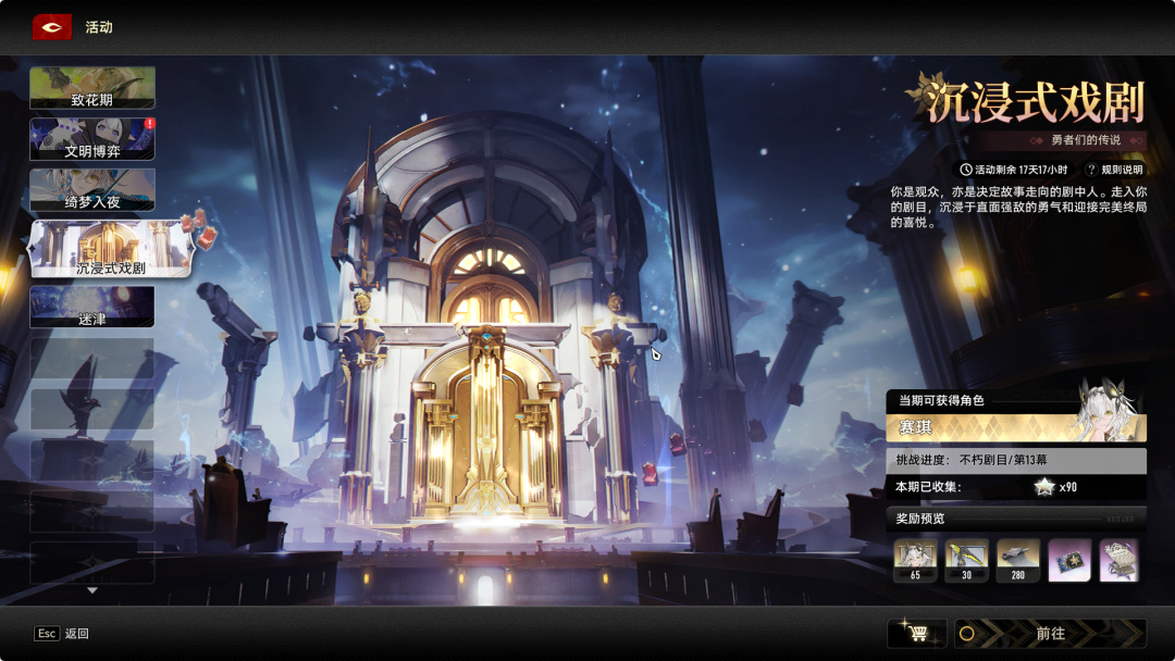 沉浸式戏剧的【经典】和【热映】难度不高,即便是难度增加的【不朽剧目】中,各种攻略里也给出了用热门角色+平民搭配即可获取60星拿到赛琪的打法。