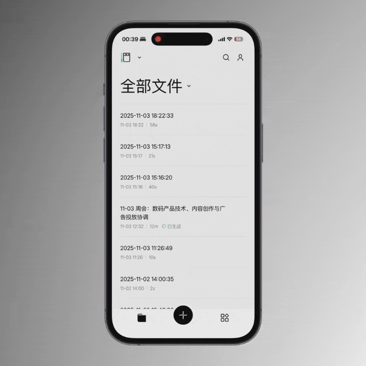 這麼個小玩意的操作邏輯也很簡單,在最新的 Plaud Note Pro 上,只要長按機器上唯一的那個按鍵,就會自動開啓錄音,再次長按就會停止錄音。