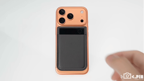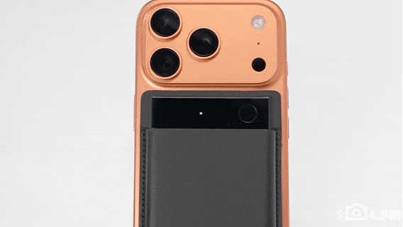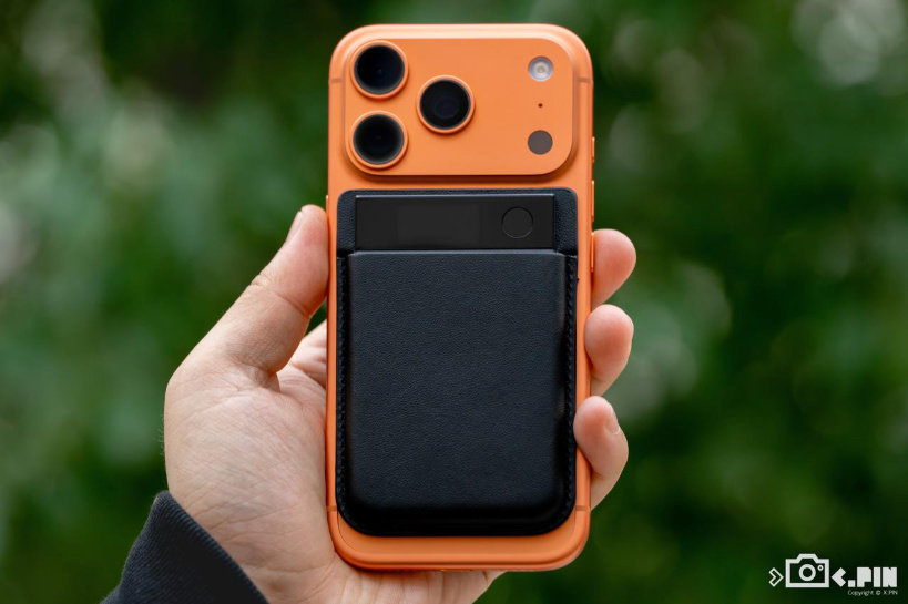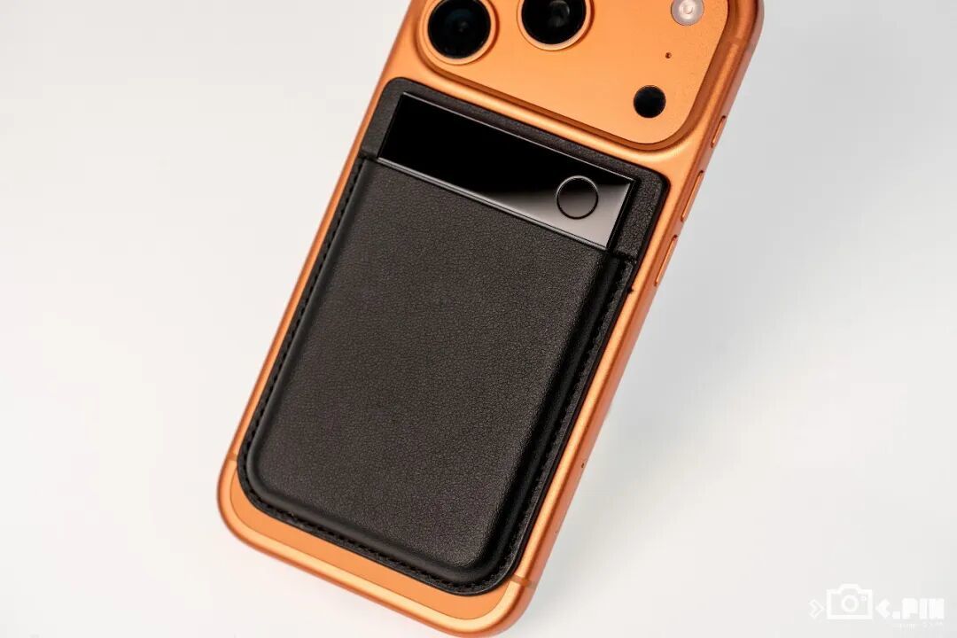 而這張卡片在配上了官方的皮套之後,可以通過 MagSafe,穩穩的吸在 iPhone 背後。