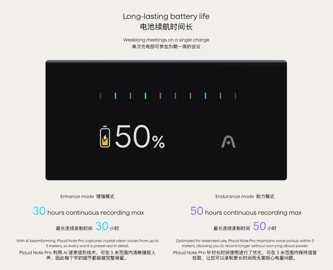 而現在,Plaud 的電量完全獨立,官方更是宣稱能一直錄 30 小時,待機 60 天。